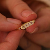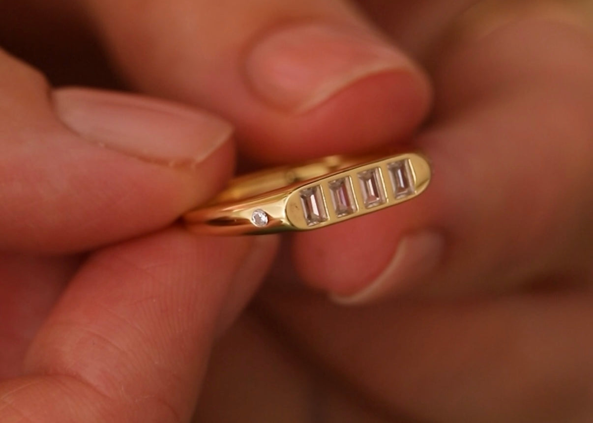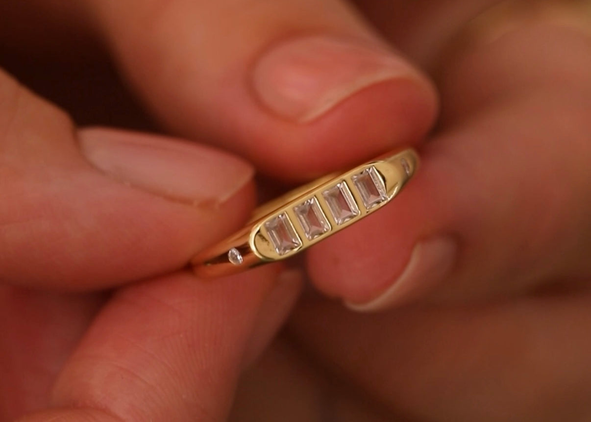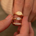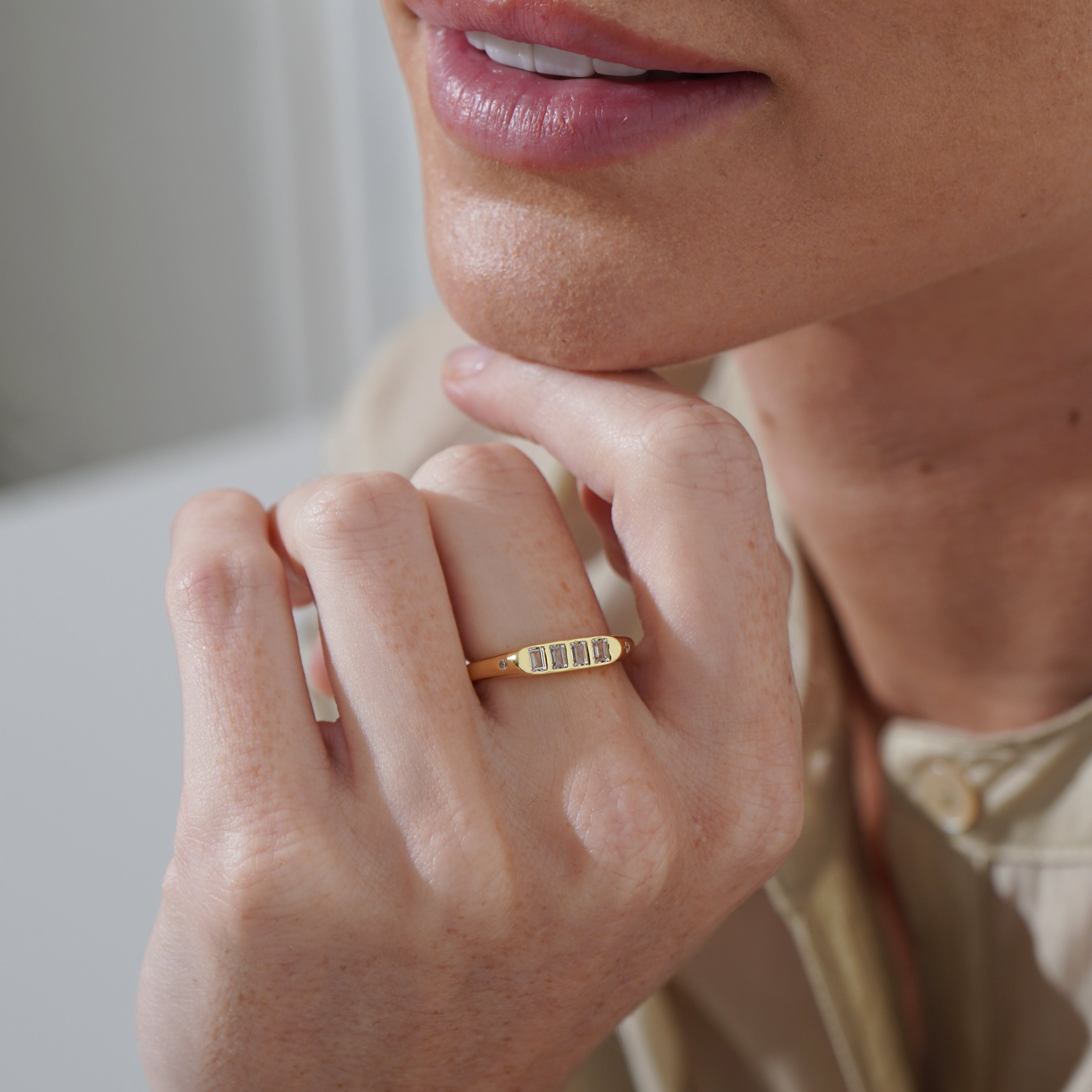 Here’s a ring that deserves to be seen and admired. A vintage inspired silhouette, decorated with sparkling baguette cz stones.