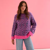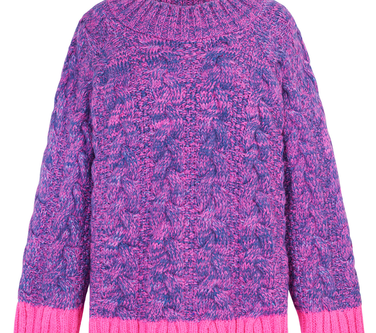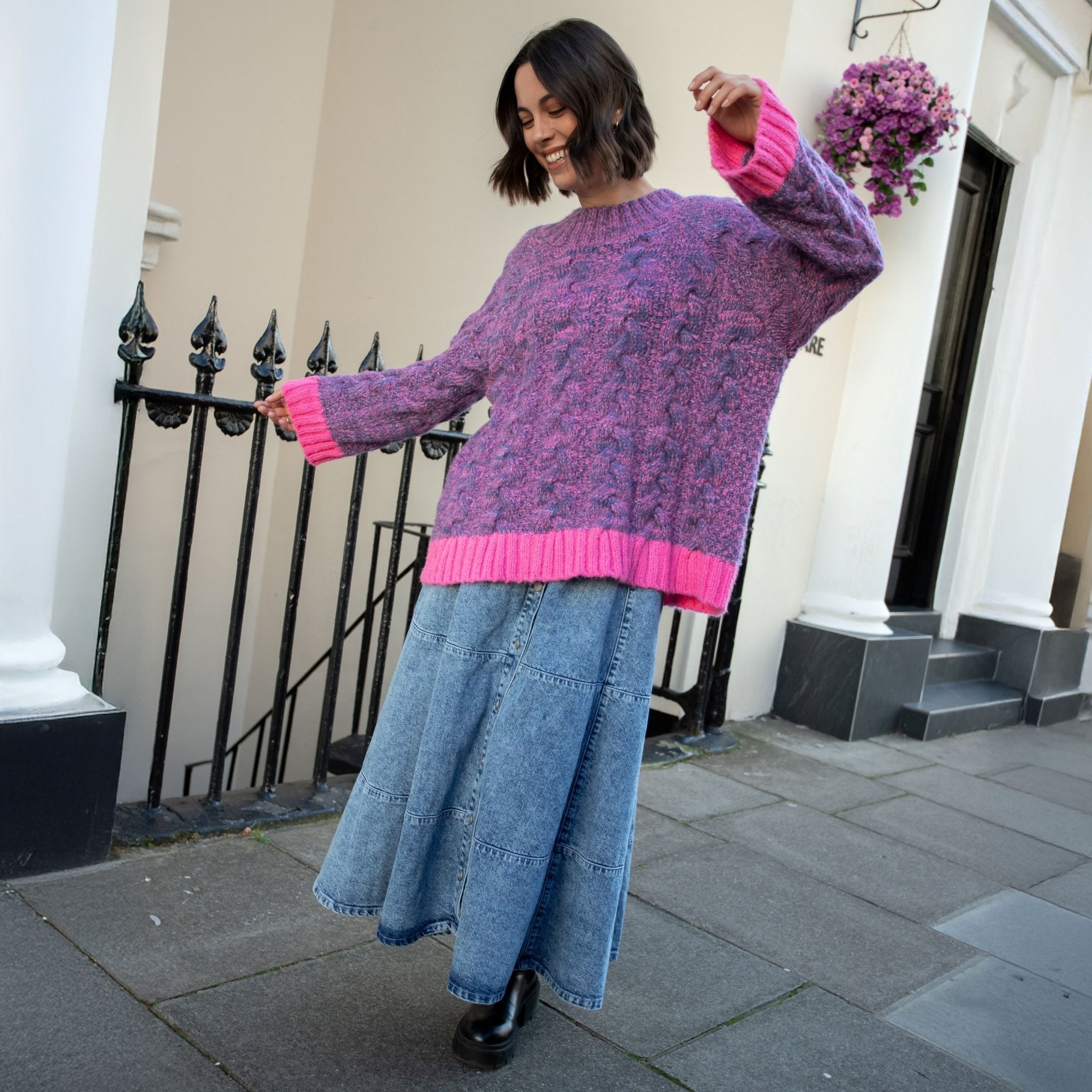 Looking for a chunky knit that brings comfort and colour? Jennie’s your girl 💙💖 Designed by Cara in a denim and pink marl twist yarn, she’s finished with a mock turtleneck, wide sleeves and textured cables that make her both cosy and elevated. To top it off, she’s got a playful pop of contrast colour at the cuff and hem, making her a statement piece you won’t find anywhere else on the high street.