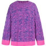 Jennie is a chunky knit jumper with personality. Her mock neck keeps things snug, the textured stitches add detail and the pop of colour at the cuff and hem makes her stand out. A playful knit that makes easy winter looks fun and gifting season brighter.