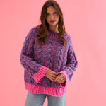 denim blue jumper uk, pink knit jumper uk, cuff detail jumper, statement knit jumper, oversized cable knit jumper, festive knitwear, winter workwear knitwear, christmas gift jumper