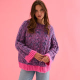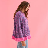🎨 Denim blue & pink twist yarn with contrast cuff & hem