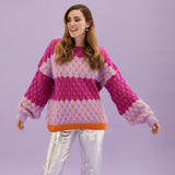 Bold, bright and bubbles! Say hello to our bubble stitch jumper Marissa. In fun bold contrasting colours, Marissa is made in an elevated bubble stitch bringing volume and joy to your wardrobe. With our signature balloon sleeves and in a relaxed oversized fit, this crew neck jumper will fast become your go-to knit this season, and seasons to come!