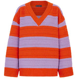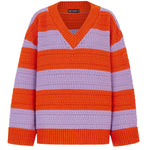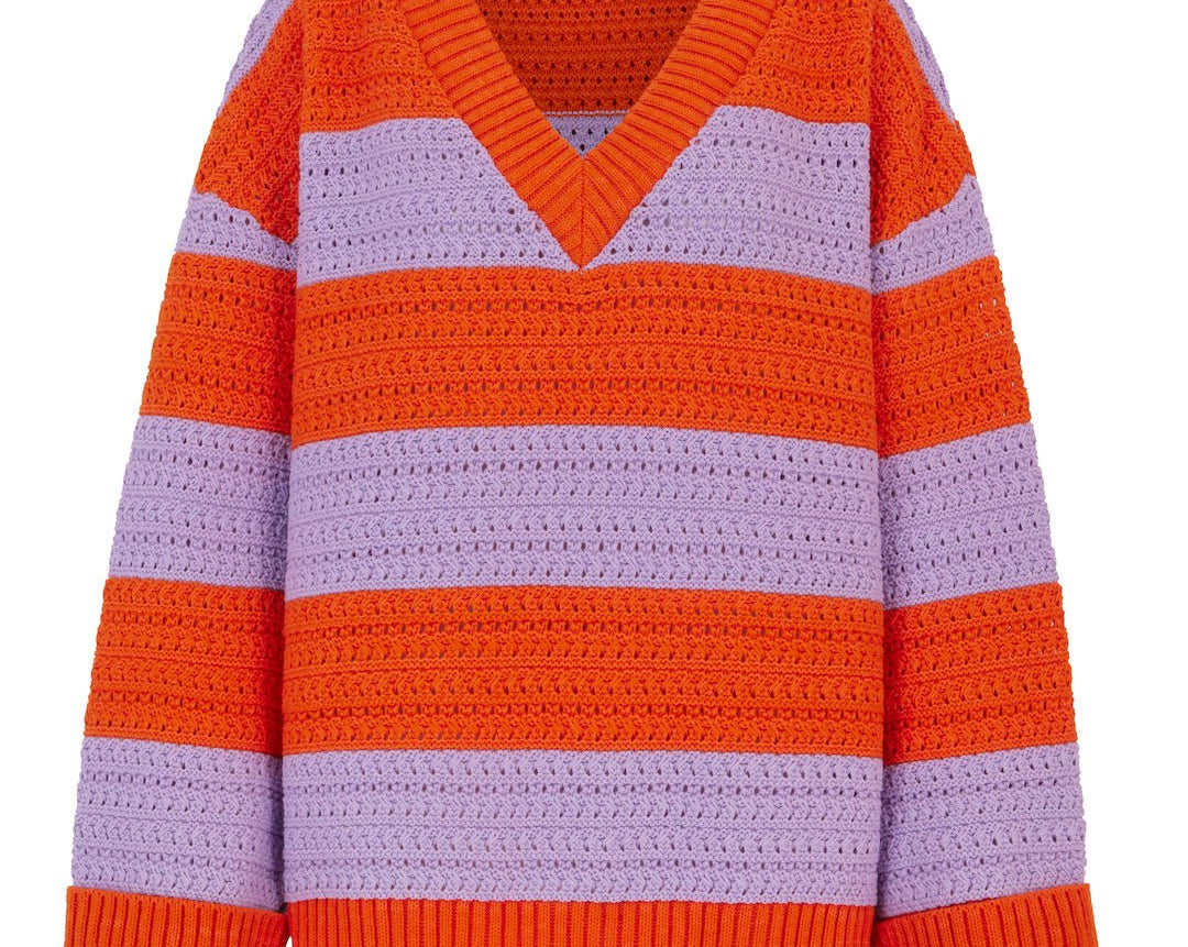 Millie Crochet Stripe V Neck Cotton Blend Jumper - Orange