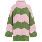 Nelly is your showstopper 💚💖 Designed by Cara in bold zigzag stripes of green and pink, she’s a knit dress with a mock turtleneck, a slouchy relaxed fit and all the comfort of your favourite jumper. A perfect dopamine dressing piece, she’s bold, joyful and designed to stand out.